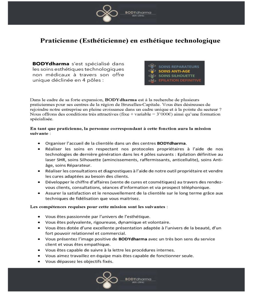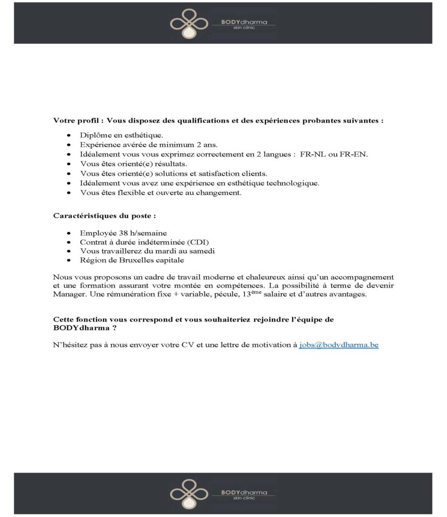 Si tu veux rejoindre la famille BODYdharma, envoie ta lettre de motivation et ton CV à jobs@bodydharma.be